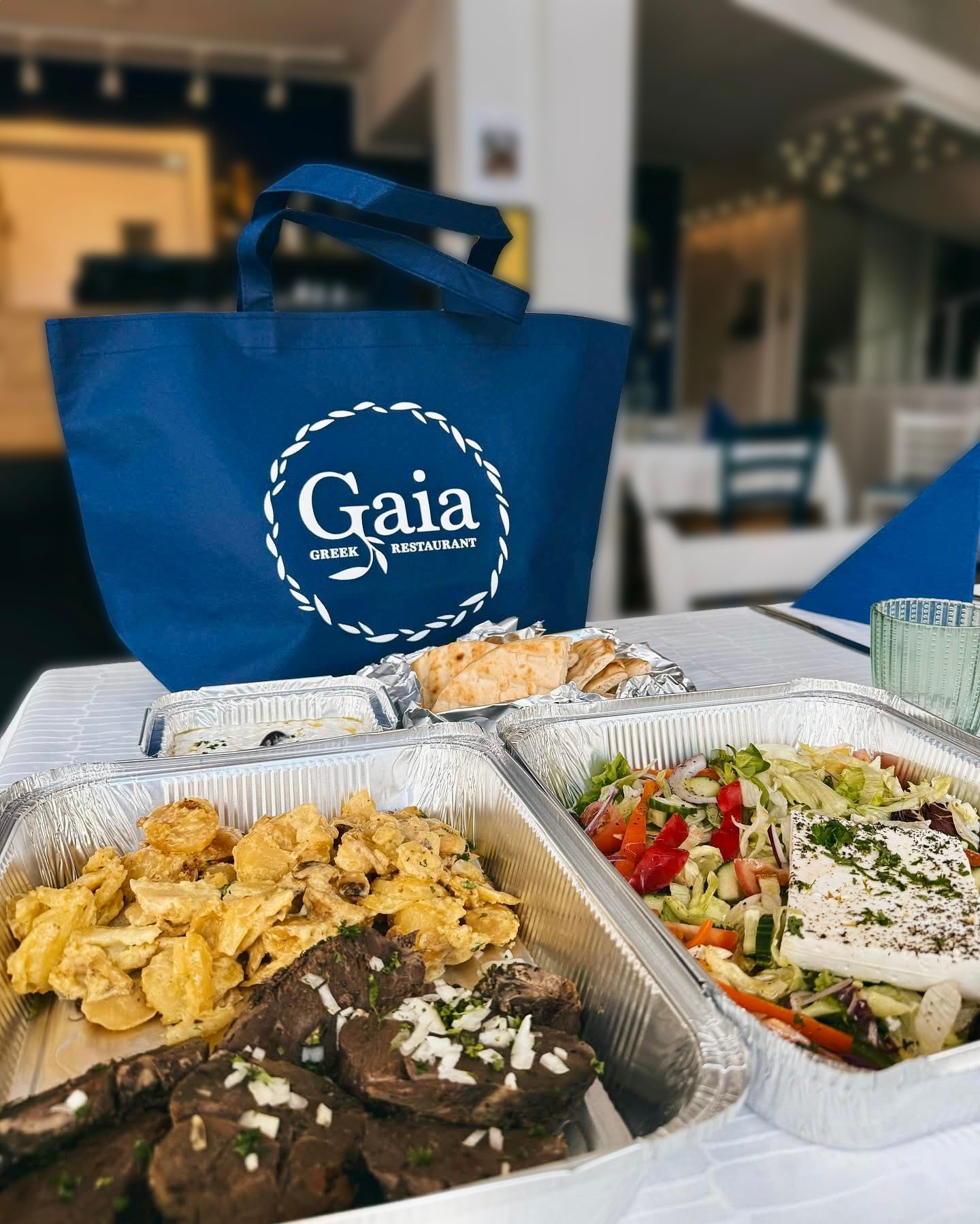 Moussaka, tzatzikia, kreikkalainen salaatti ja 3 pitaleipää. Hinta 60€